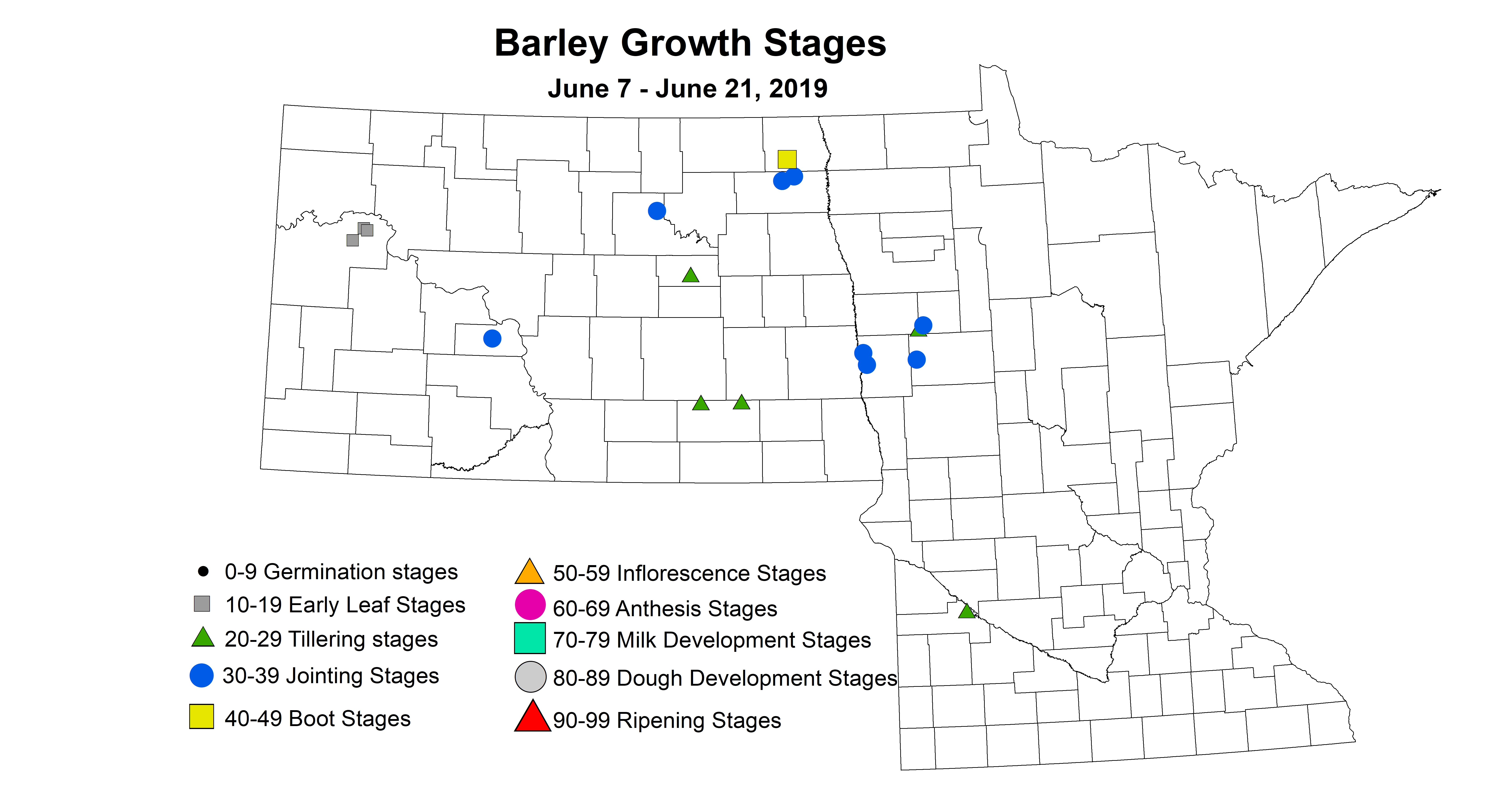 | Barley | 5/31-6/8 | 5/31-6/14 | 6/7-6/21 | 6/14-6/28 | 6/21-7/5 | 6/28-7/12 | 7/5-7/19 | 7/12-7/26 | 7/19-8/2 | season |