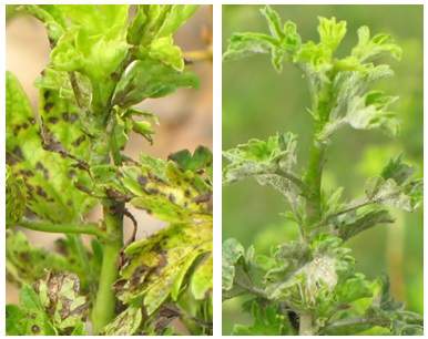 Two gooseberry plants that are infected.