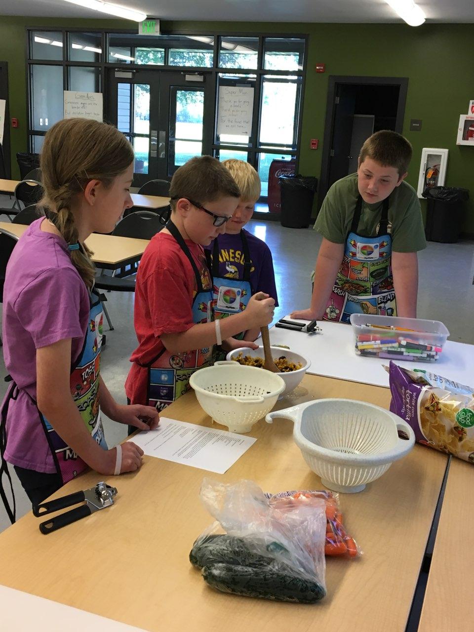 Youth learn cooking skills at the North Dakota 4-H Camp. (NDSU photo)