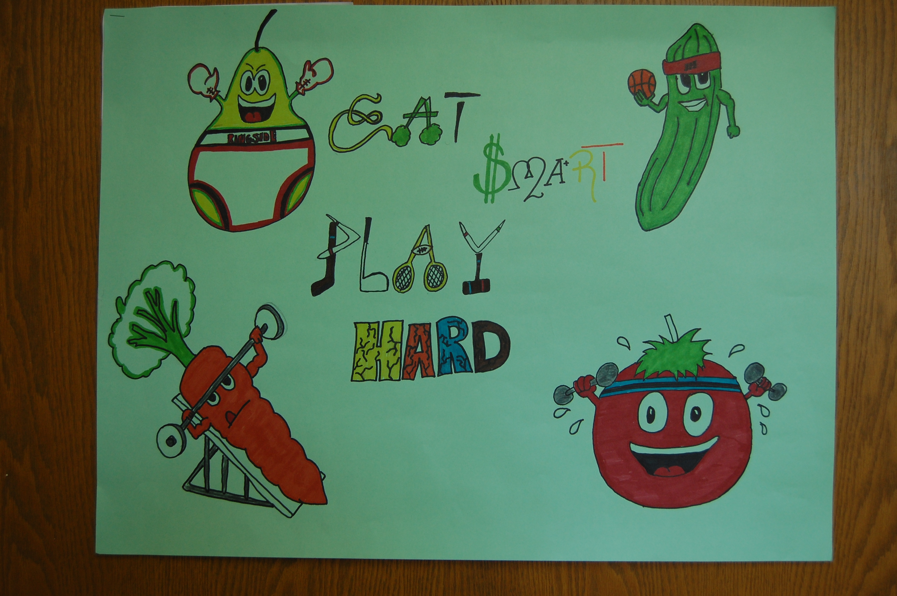 This entry earns Adriane Two Hearts of Roseglen second place in the teen division of the ""Eat Smart. Play Hard."" poster contest.