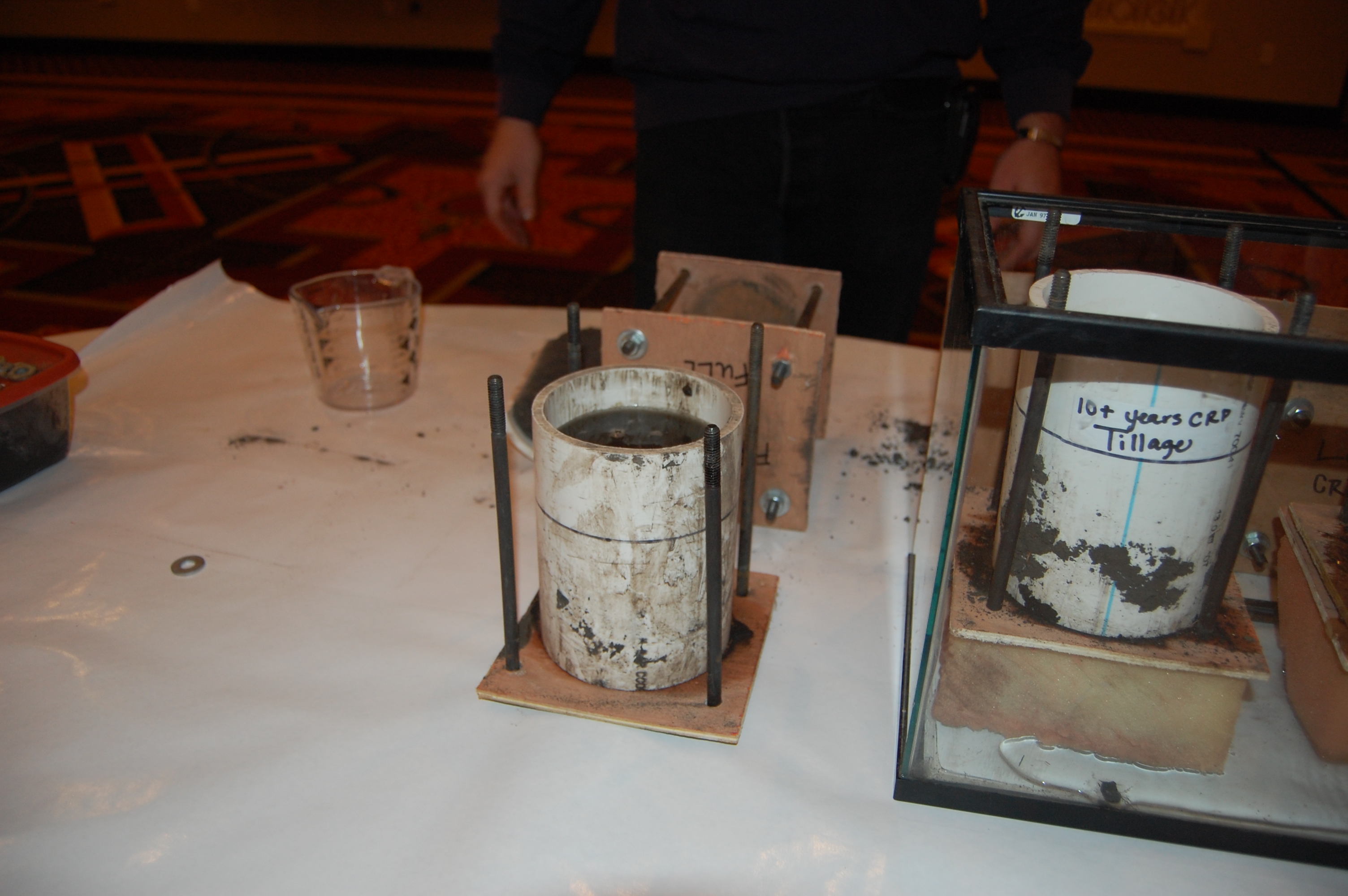 A demonstration by Lee Briese showing that water will not flow through soils with high salinity problems.