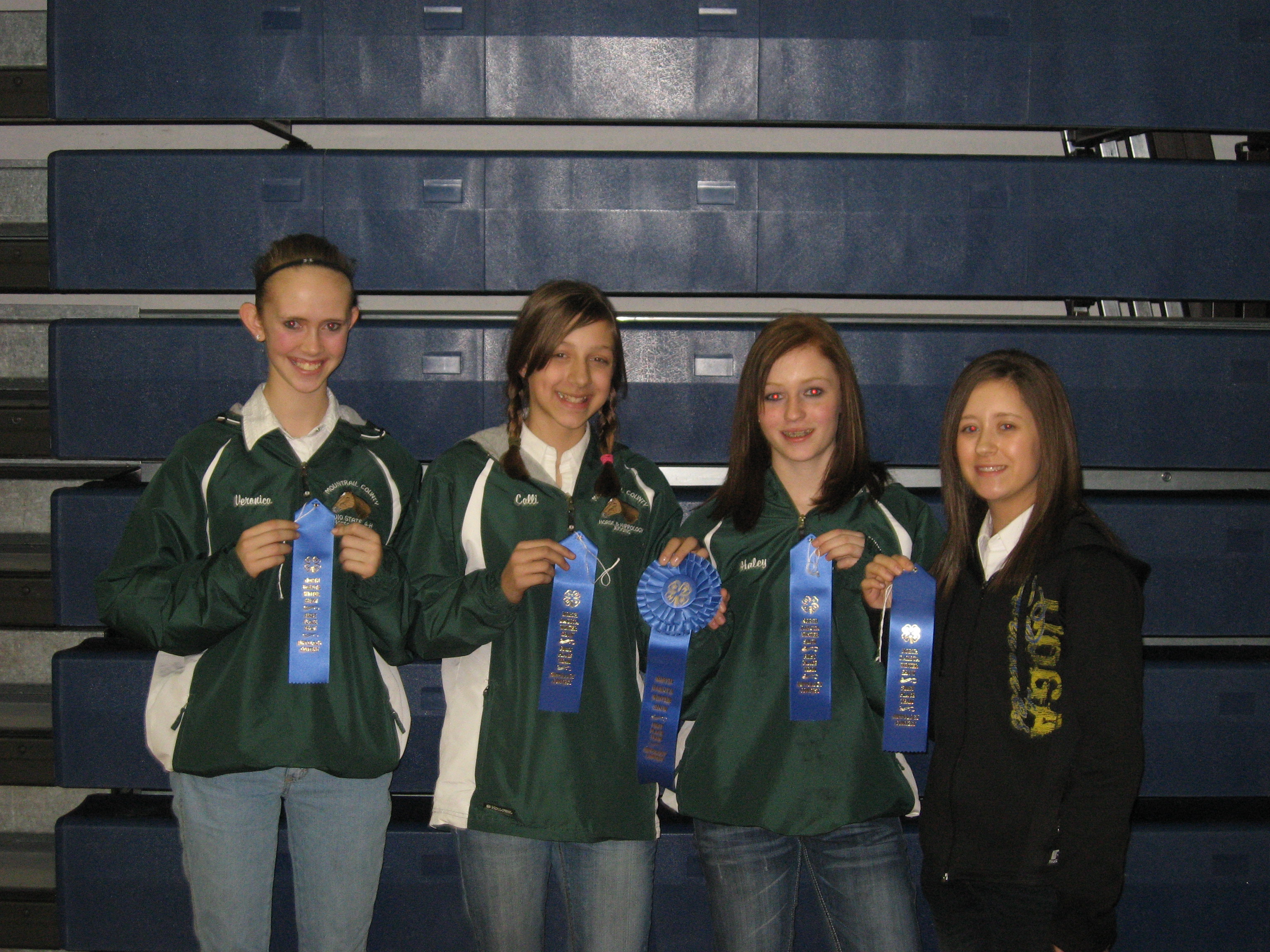 Mountrail County's team places first in the junior division of the hippology contest at the North Dakota Winter Show. The team members are (from left to right): Veronica Enander, Stanley; Bobbi Hennessy, Stanley; Haley Goodall, Stanley; and Cheyene Liedle, White Earth.https://www.ag.ndsu.edu/news/newsreleases/2011/march-14-2011/4-h2019ers-win-in-hippology-contest/mountrail-county-s-team-places-first-in-the-junior-division-of-t/viewhttps://www.ag.ndsu.edu/news/newsreleases/2011/march-14-2011/4-h2019ers-win-in-hippology-contest/mountrail-county-s-team-places-first-in-the-junior-division-of-t/@@download/image/2011-03-18.7584497631