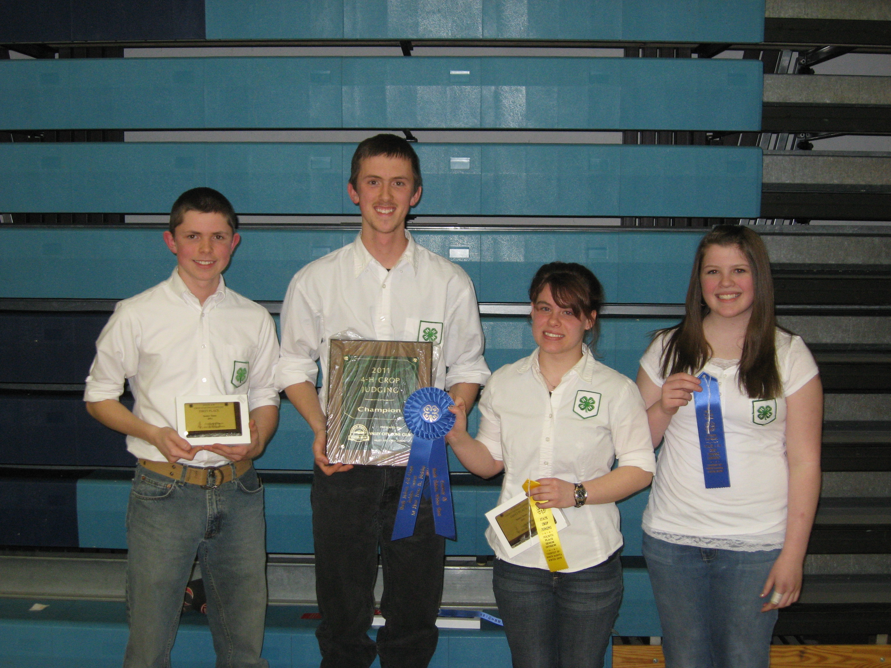 Grand Forks County's senior crops judging team places first in competition at the North Dakota Winter Show. Team members pictured (from left to right) are: Tanner Granger of Reynolds, Collin Granger of Reynolds, Kristina Hathaway of Grand Forks and Sarah McNaughton of Grand Forks.https://www.ag.ndsu.edu/news/newsreleases/2011/march-14-2011/grand-forks-foster-teams-win-4-h-crops-judging-contest/grand-forks-county-s-senior-crops-judging-team-places-first-in-c/viewhttps://www.ag.ndsu.edu/news/newsreleases/2011/march-14-2011/grand-forks-foster-teams-win-4-h-crops-judging-contest/grand-forks-county-s-senior-crops-judging-team-places-first-in-c/@@download/image/2011-03-17.0060338021
