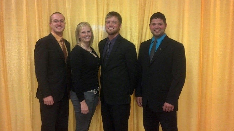 NDSU's dairy judging team returned from the All-American Dairy Show with several awards. Pictured are (from left) team members Eric Miller, Kristi Tonnessen and Brett Blackwelder, and team coach Cole Rupprecht. (NDSU photo)https://www.ag.ndsu.edu/news/newsreleases/2013/sept-23-2013/ndsu-dairy-judging-team-competes-nationally/ndsu-s-dairy-judging-team-returned-from-the-all-american-dairy-s/viewhttps://www.ag.ndsu.edu/news/newsreleases/2013/sept-23-2013/ndsu-dairy-judging-team-competes-nationally/ndsu-s-dairy-judging-team-returned-from-the-all-american-dairy-s/@@download/image/2013-09-26.0706298317