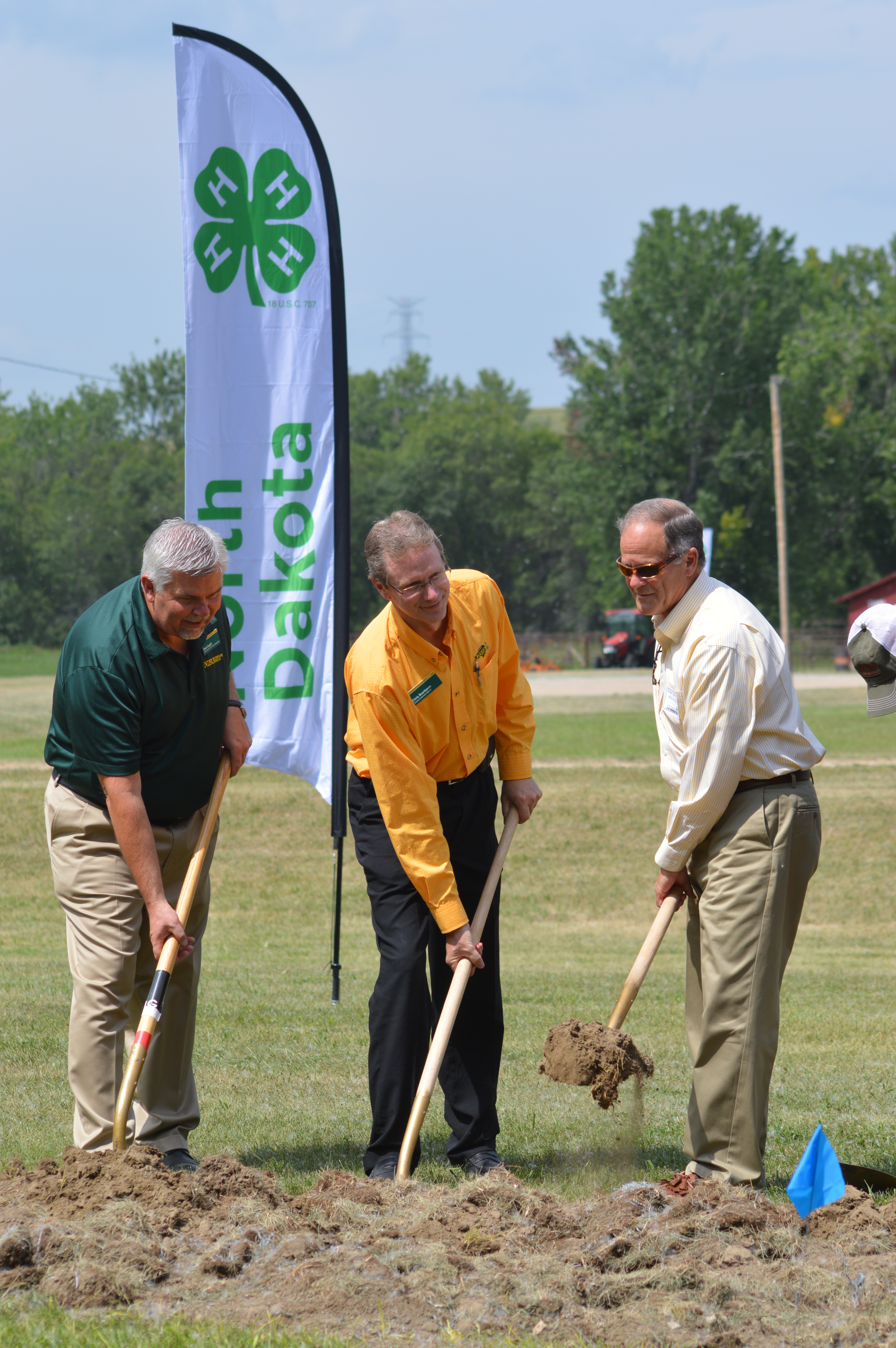 NDSU Extension Service Center for 4-H Youth Development Chair Brad Cogdill (left), NDSU Extension Service Director Chris Boerboom and NDSU President Dean Bresciani help break ground for a multipurpose facility at the North Dakota 4-H Camp near Washburn. The facility is part of a $2.3 million renovation project at the 47-year-old camp. (NDSU photo)https://www.ag.ndsu.edu/news/newsreleases/2014/aug-4-2014/n-d-4-h-camp-breaks-ground-for-multipurpose-center/ndsu-extension-service-center-for-4-h-youth-development-chair-br/viewhttps://www.ag.ndsu.edu/news/newsreleases/2014/aug-4-2014/n-d-4-h-camp-breaks-ground-for-multipurpose-center/ndsu-extension-service-center-for-4-h-youth-development-chair-br/@@download/image/2014-08-05.4058189924