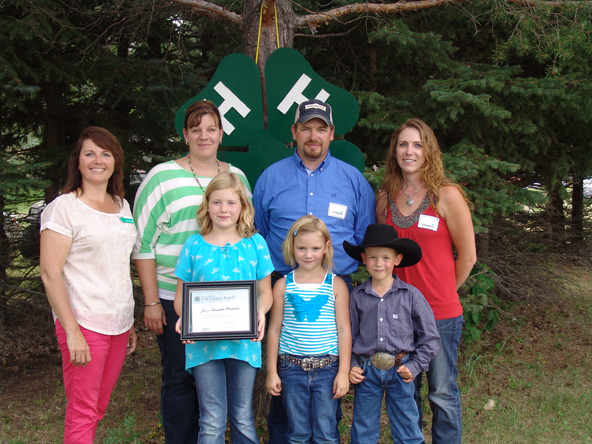 The Hendrickson family is named a 4-H century family. Pictured are (back row from left) North Dakota 4-H Foundation Board Chair Leann Schafer, Lisa Hendrickson, Kevin Hendrickson and Kari (Hendrickson) Risty, and (front row from left) Mackenzie Hendrickson, Sawyer Hendrickson and Kohl Risty.https://www.ag.ndsu.edu/news/newsreleases/2014/dec-1-2014/n-d-4-h-volunteers-longtime-families-honored/the-hendrickson-family-is-named-a-4-h-century-family.pictured-ar/viewhttps://www.ag.ndsu.edu/news/newsreleases/2014/dec-1-2014/n-d-4-h-volunteers-longtime-families-honored/the-hendrickson-family-is-named-a-4-h-century-family.pictured-ar/@@download/image/2014-12-03.4284684744