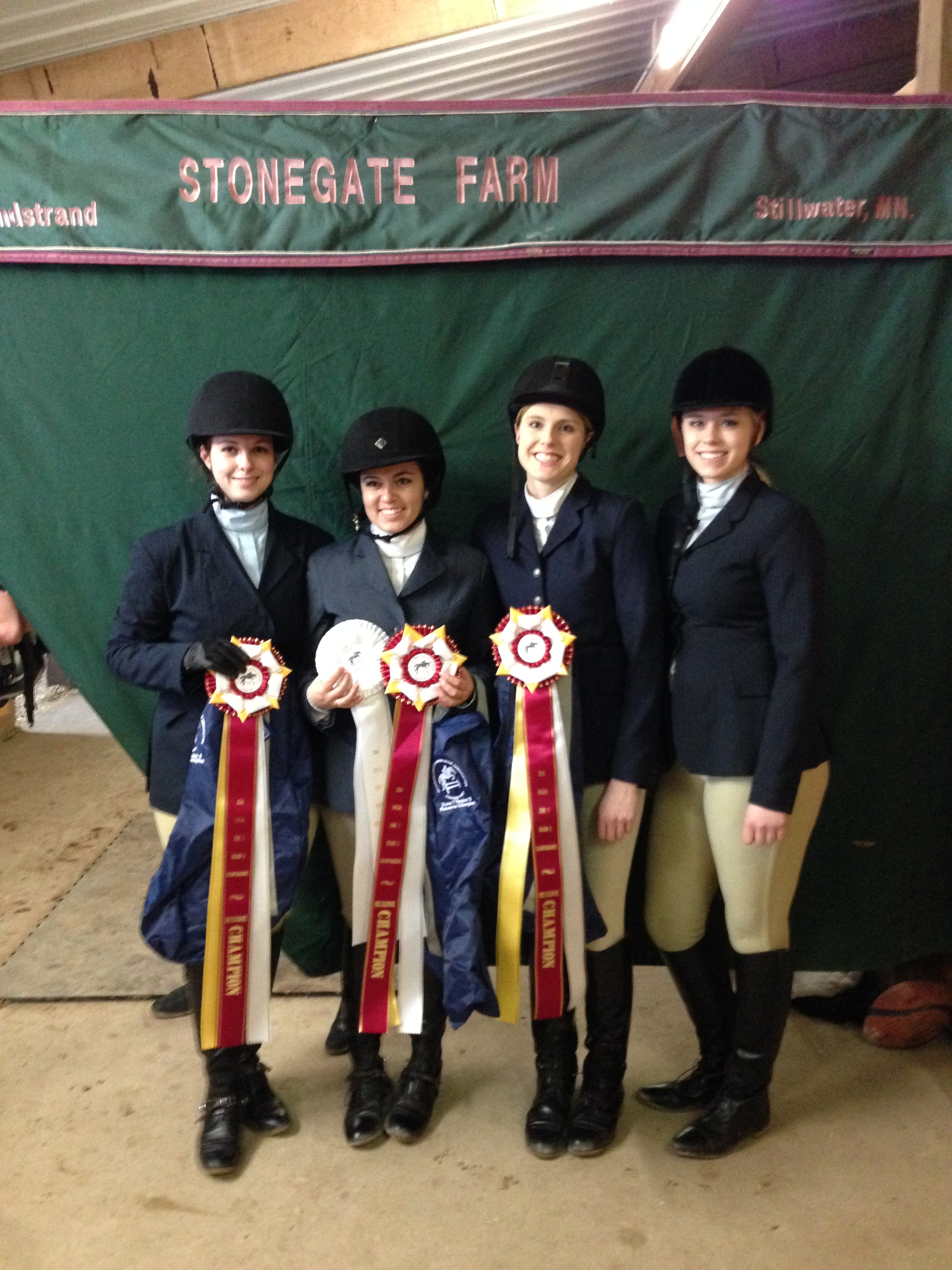 Four members of NDSU's hunt seat equestrian team competed in the Intercollegiate Horse Show Association's Zone 7, Region 3, horse show in Stillwater, Minn., in February. They are, from left, Deann Berntson, Sarah Bridge, Kaylin Scarberry and Sydney Larson. Berntson, Bridge and Scarberry are advancing to competition in Madison, Wis., in April.https://www.ag.ndsu.edu/news/newsreleases/2014/feb-24-2014/ndsu-riders-advance-to-zone-competition/four-members-of-ndsu-s-hunt-seat-equestrian-team-competed-in-the/viewhttps://www.ag.ndsu.edu/news/newsreleases/2014/feb-24-2014/ndsu-riders-advance-to-zone-competition/four-members-of-ndsu-s-hunt-seat-equestrian-team-competed-in-the/@@download/image/2014-02-27.4966262687
