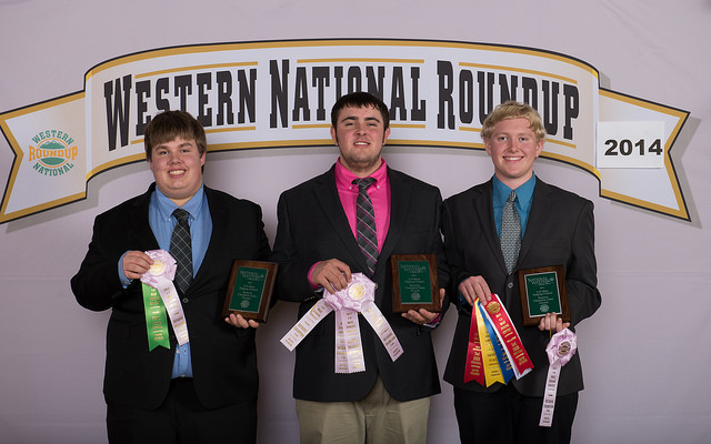 The Mountrail County meats judging team places second at the Western National Roundup in Denver, Colo. Pictured (from left) are team members Daniel Bolen, Dylan Enger and Jonathon Rosencrans.https://www.ag.ndsu.edu/news/newsreleases/2015/jan-26-2015/n-d-youth-place-in-national-4-h-competition/the-mountrail-county-meats-judging-team-places-second-at-the-wes/viewhttps://www.ag.ndsu.edu/news/newsreleases/2015/jan-26-2015/n-d-youth-place-in-national-4-h-competition/the-mountrail-county-meats-judging-team-places-second-at-the-wes/@@download/image/2015-01-26.7497779596