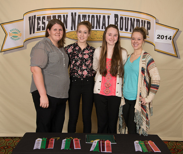 The Ward County horse judging team places fifth overall at the Western National Roundup in Denver, Colo. Pictured (from left) are Paige Brummund, coach, and team members Shaylee Miller, Kara Scheresky and Kali Miller.https://www.ag.ndsu.edu/news/newsreleases/2015/jan-26-2015/n-d-youth-place-in-national-4-h-competition/the-ward-county-horse-judging-team-places-fifth-overall-at-the-w/viewhttps://www.ag.ndsu.edu/news/newsreleases/2015/jan-26-2015/n-d-youth-place-in-national-4-h-competition/the-ward-county-horse-judging-team-places-fifth-overall-at-the-w/@@download/image/2015-01-26.2929734267