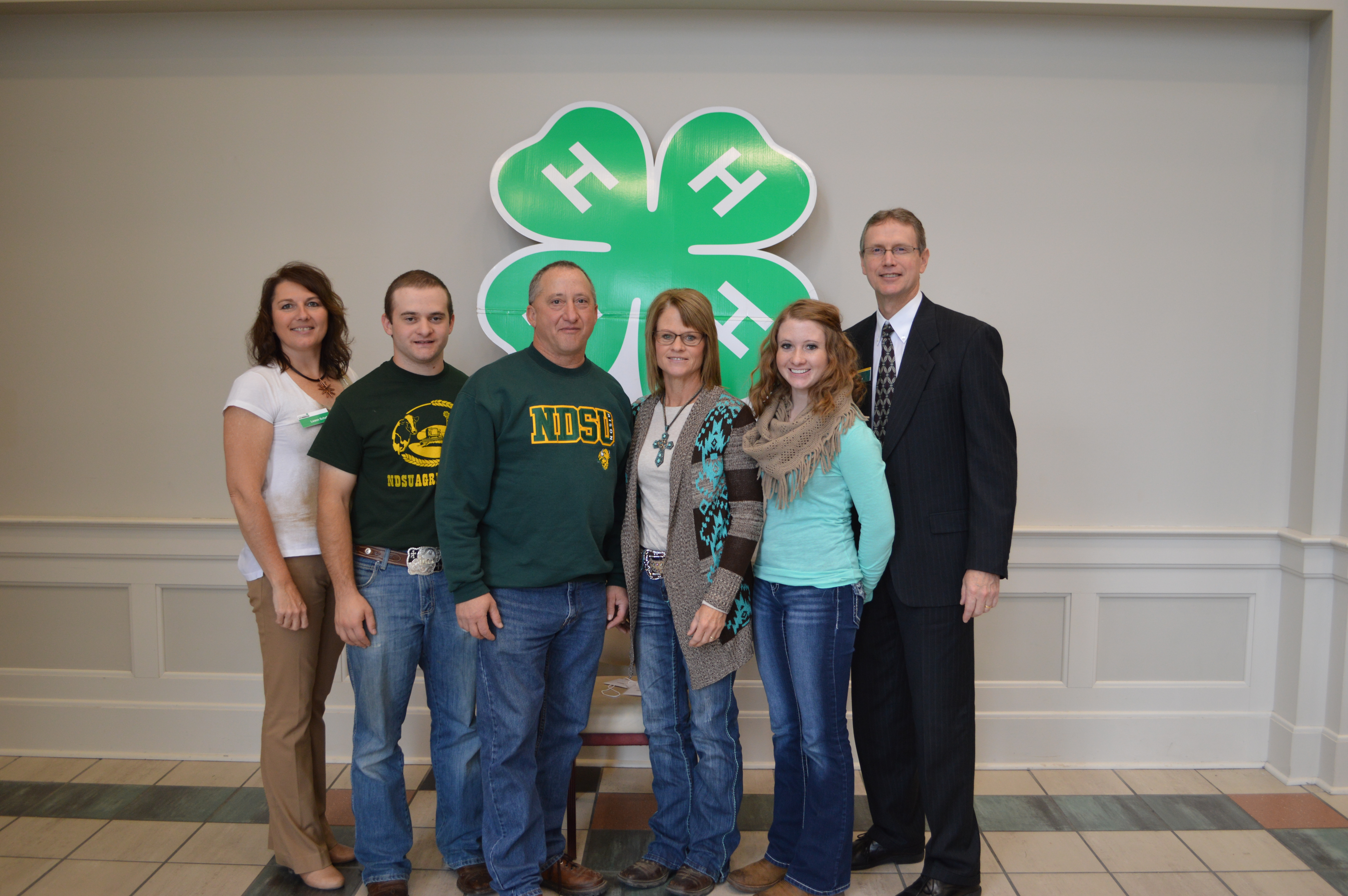 The Mitchell Leier family was named a North Dakota 4-H century family. Picutred are, from left, Leann Schafer, chairwoman of the North Dakota 4-H Foundation board; Justin Leier; Mitch Leier; Doris Leier; Angela Leier; and Chris Boerboom, NDSU Extension Service director. (NDSU photo)https://www.ag.ndsu.edu/news/newsreleases/2015/nov-30-2015/n-d-4-h-volunteers-longtime-families-honored/the-mitchell-leier-family-was-named-a-north-dakota-4-h-century-f/viewhttps://www.ag.ndsu.edu/news/newsreleases/2015/nov-30-2015/n-d-4-h-volunteers-longtime-families-honored/the-mitchell-leier-family-was-named-a-north-dakota-4-h-century-f/@@download/image/2015-12-01.3626326830
