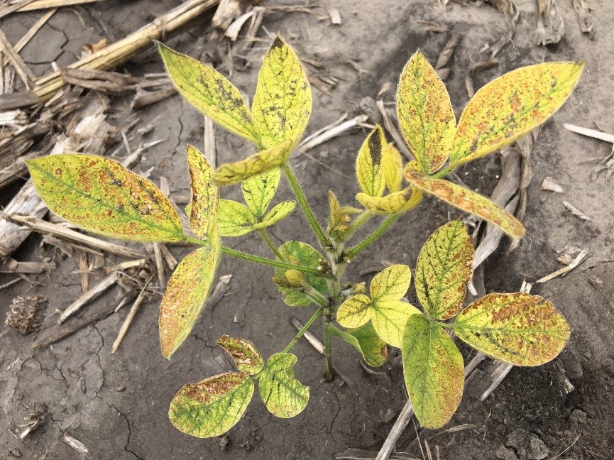 Soybean plant with an IDC rating of 4. (NDSU Photo)