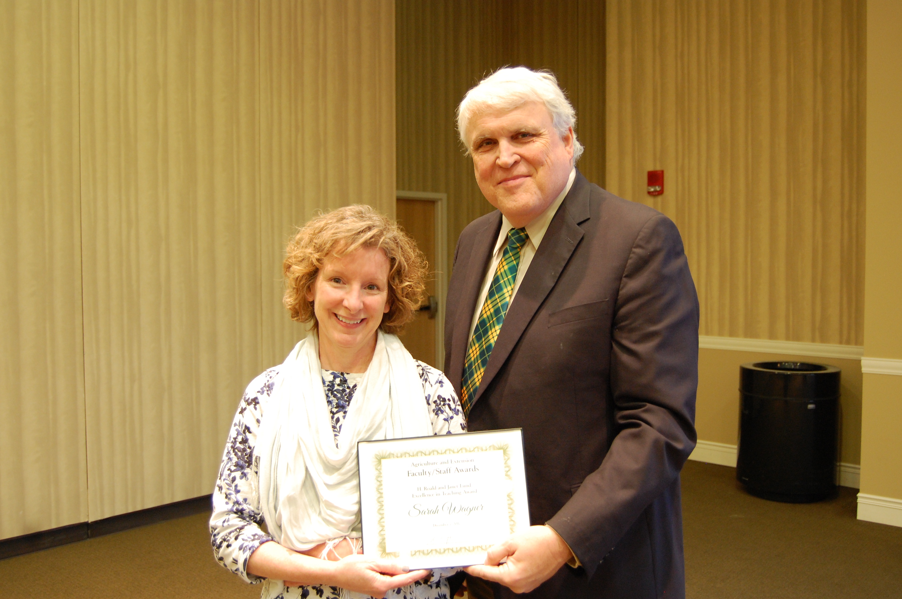 Sarah Wagner receives the H. Roald and Janet Lund Excellence in Teaching Award from David Buchanan, associate dean for academic programs. (NDSU photo)https://www.ag.ndsu.edu/news/newsreleases/2017/dec-4-2017/ndsu-agriculture-extension-faculty-and-staff-honored/sarah-wagner-receives-the-h.roald-and-janet-lund-excellence-in-t/viewhttps://www.ag.ndsu.edu/news/newsreleases/2017/dec-4-2017/ndsu-agriculture-extension-faculty-and-staff-honored/sarah-wagner-receives-the-h.roald-and-janet-lund-excellence-in-t/@@download/image/2017-12-07.6674559438