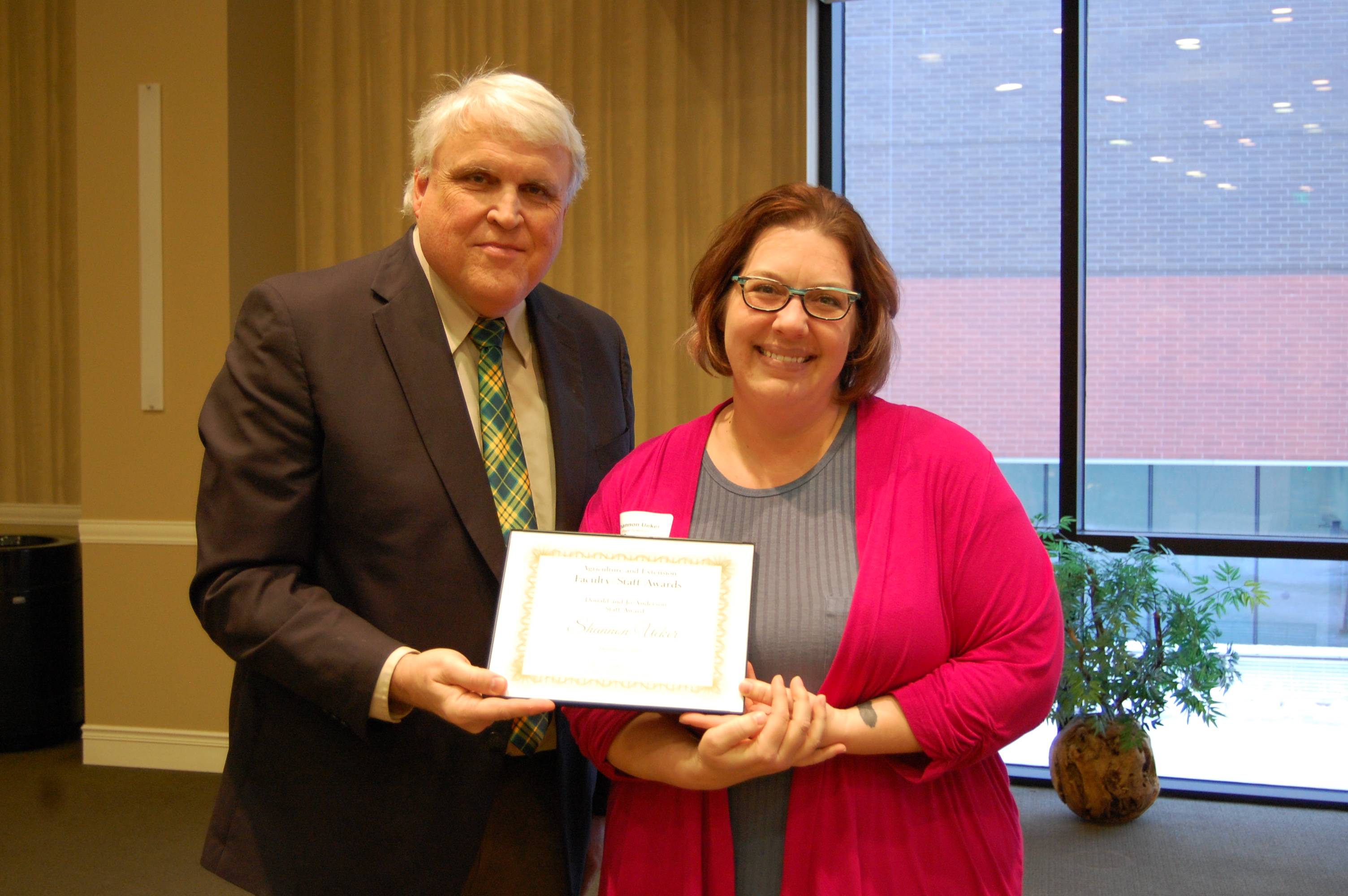 Shannon Ueker receives the Donald and Jo Anderson Staff Award from David Buchanan, associate dean for academic programs. (NDSU photo)https://www.ag.ndsu.edu/news/newsreleases/2017/dec-4-2017/ndsu-agriculture-extension-faculty-and-staff-honored/shannon-ueker-receives-the-donald-and-jo-anderson-staff-award-fr/viewhttps://www.ag.ndsu.edu/news/newsreleases/2017/dec-4-2017/ndsu-agriculture-extension-faculty-and-staff-honored/shannon-ueker-receives-the-donald-and-jo-anderson-staff-award-fr/@@download/image/2017-12-07.0517623805