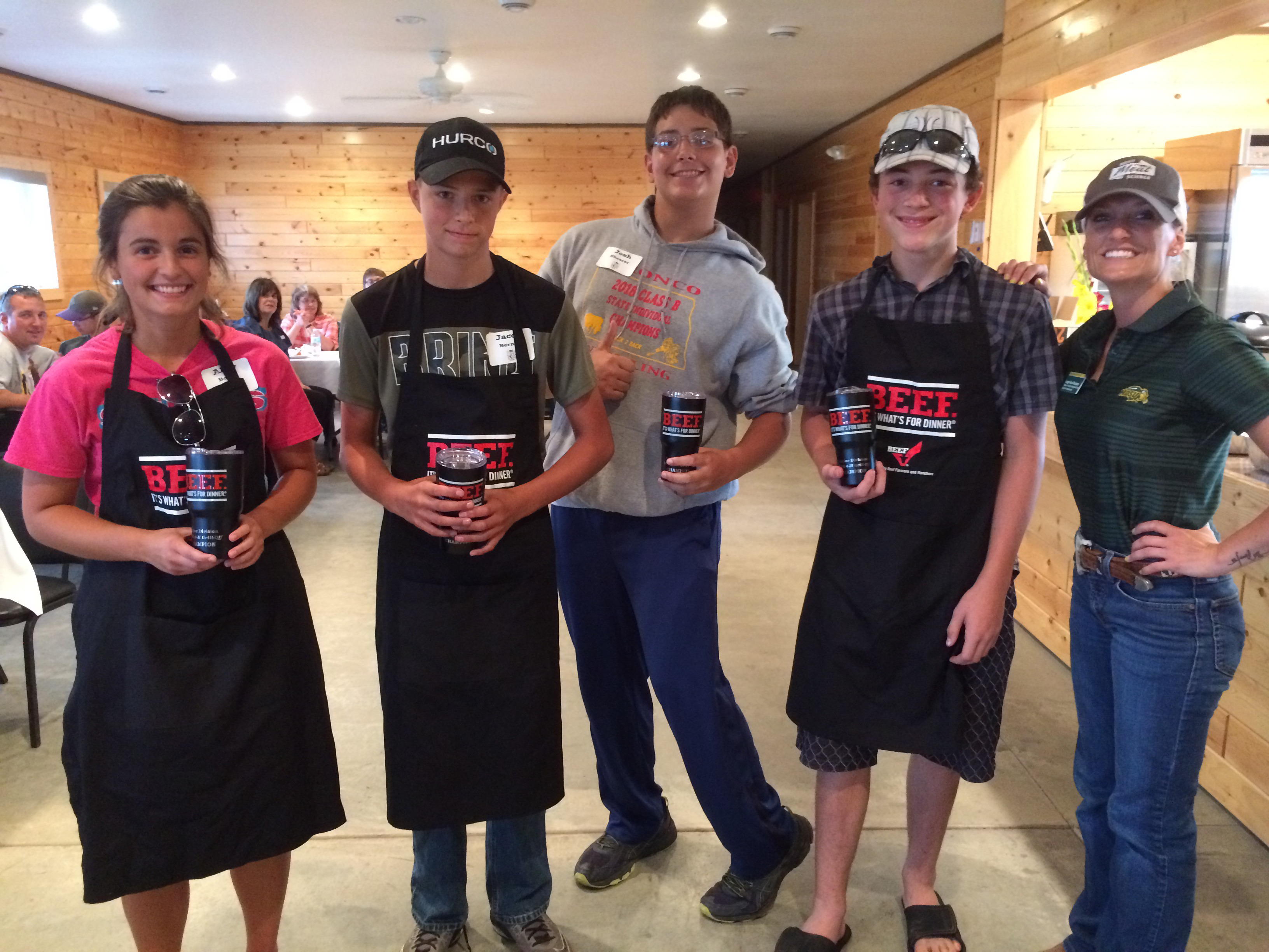 A Richland County team places first in the junior division of the 4-H Grill-off. Pictured are (from left): team members Abby Boelke, Jacob Berndt, Josh Shearer and John Kuruc, and Leigh Ann Skurupey, NDSU Extension 4-H youth development specialist for animal sciences. (NDSU photo)https://www.ag.ndsu.edu/news/newsreleases/2018/aug-13-2018/n-d-4-h2019ers-grill-up-success/a-richland-county-team-places-first-in-the-junior-division-of-th/viewhttps://www.ag.ndsu.edu/news/newsreleases/2018/aug-13-2018/n-d-4-h2019ers-grill-up-success/a-richland-county-team-places-first-in-the-junior-division-of-th/@@download/image/2018-08-15.0360640047