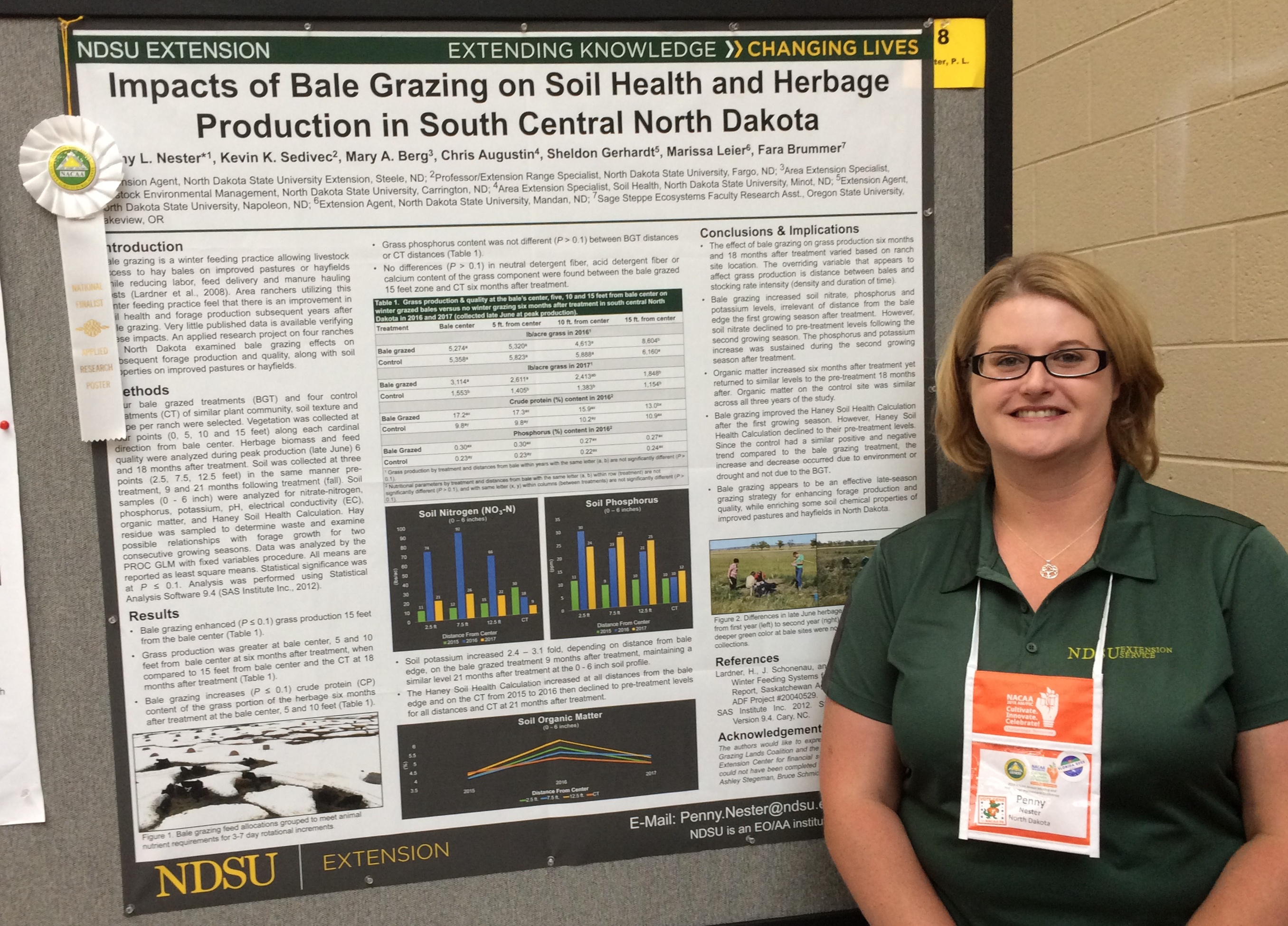 Penny Nester, NDSU Extension agriculture and natural resources agent in Kidder County, is recognized at the National Association of County Agricultural Agents’ conference for a poster on the impacts of bale grazing on soil health and herbage production in south-central North Dakota. (NDSU photo)https://www.ag.ndsu.edu/news/newsreleases/2018/aug-13-2018/ndsu-extension-agents-specialists-honored/penny-nester-ndsu-extension-agriculture-and-natural-resources-ag/viewhttps://www.ag.ndsu.edu/news/newsreleases/2018/aug-13-2018/ndsu-extension-agents-specialists-honored/penny-nester-ndsu-extension-agriculture-and-natural-resources-ag/@@download/image/2018-08-15.8390921865