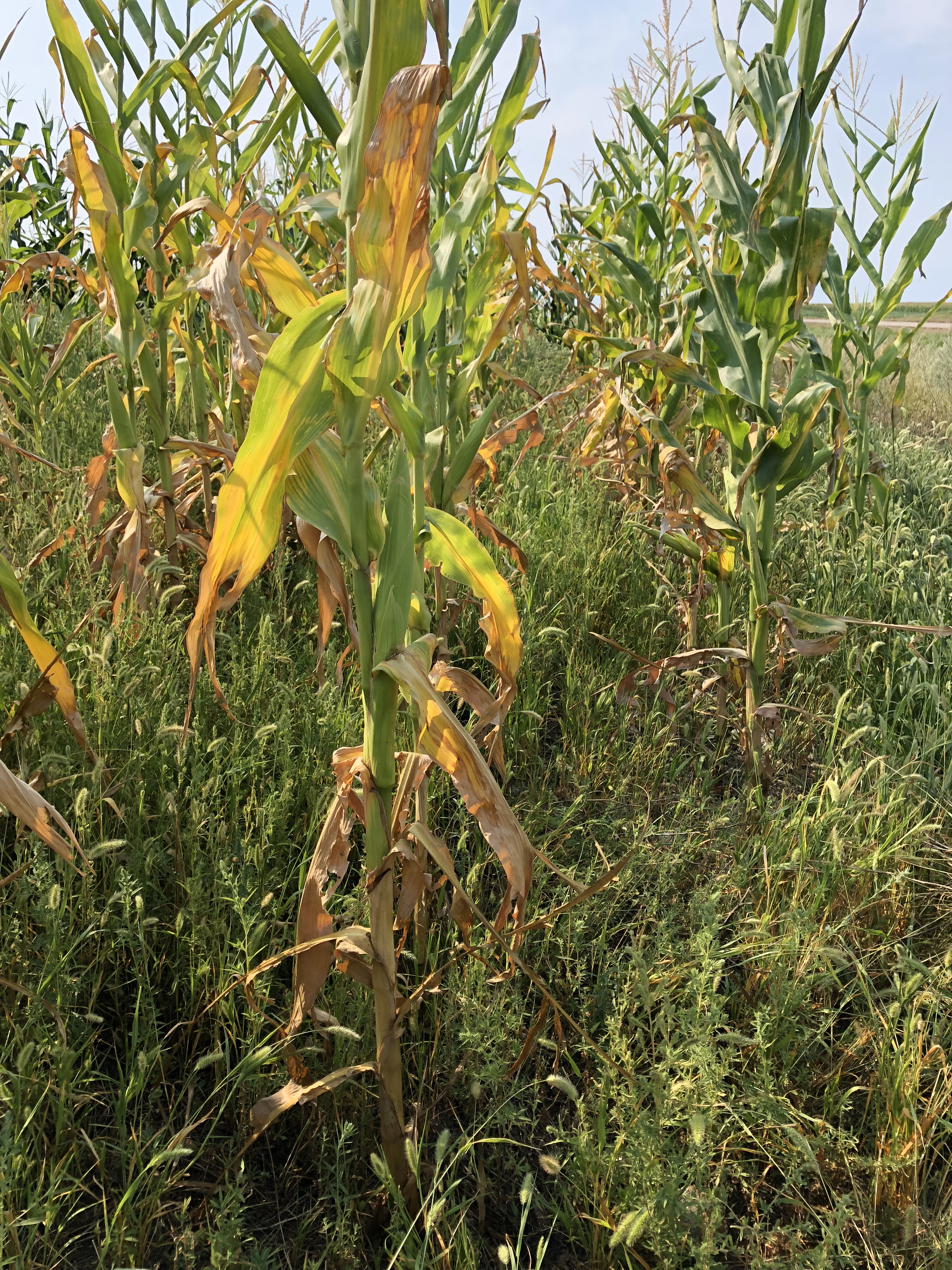 Drought-stressed corn with the bottom three to four leaves that were brown tested at 76.5 percent water content at NDSU's Central Grasslands Research Extension Center near Streeter, N.D. (NDSU photo)https://www.ag.ndsu.edu/news/newsreleases/2018/aug-20-2018/water-content-key-in-making-corn-silage/drought-stressed-corn-with-the-bottom-three-to-four-leaves-that-/viewhttps://www.ag.ndsu.edu/news/newsreleases/2018/aug-20-2018/water-content-key-in-making-corn-silage/drought-stressed-corn-with-the-bottom-three-to-four-leaves-that-/@@download/image/2018-08-24.1491471080