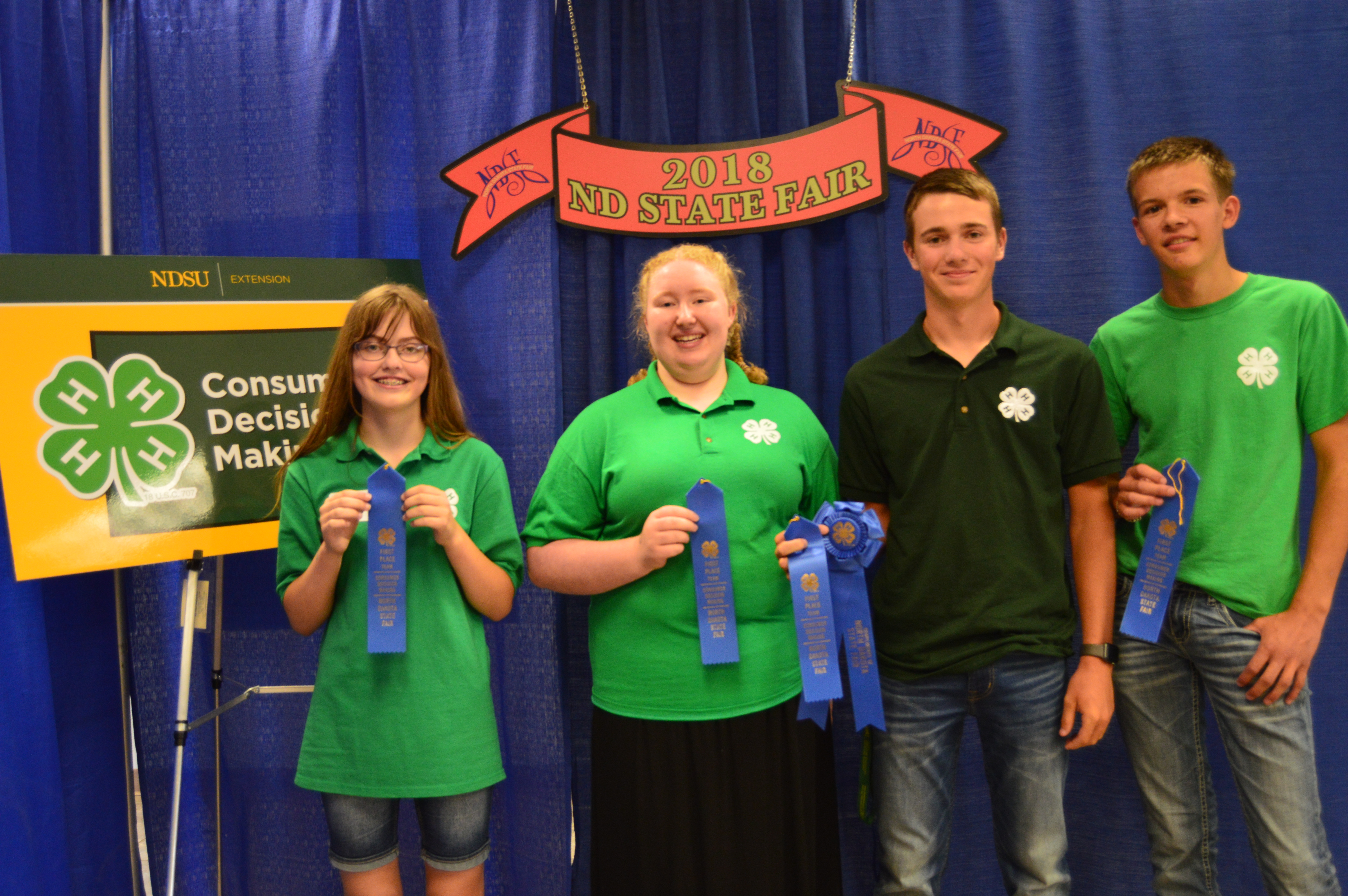 Cass County's team took first place in the senior division of the North Dakota 4-H consumer decision making contest. Pictured are (from left): Maddie Robinson, Josie Mohror, Tyler Marschke and Sam Radermacher (NDSU photo)https://www.ag.ndsu.edu/news/newsreleases/2018/aug-6-2018/youth-place-in-n-d-4-h-consumer-decision-making-contest/cass-county-s-team-took-first-place-in-the-senior-division-of-th/viewhttps://www.ag.ndsu.edu/news/newsreleases/2018/aug-6-2018/youth-place-in-n-d-4-h-consumer-decision-making-contest/cass-county-s-team-took-first-place-in-the-senior-division-of-th/@@download/image/2018-08-10.8825434915