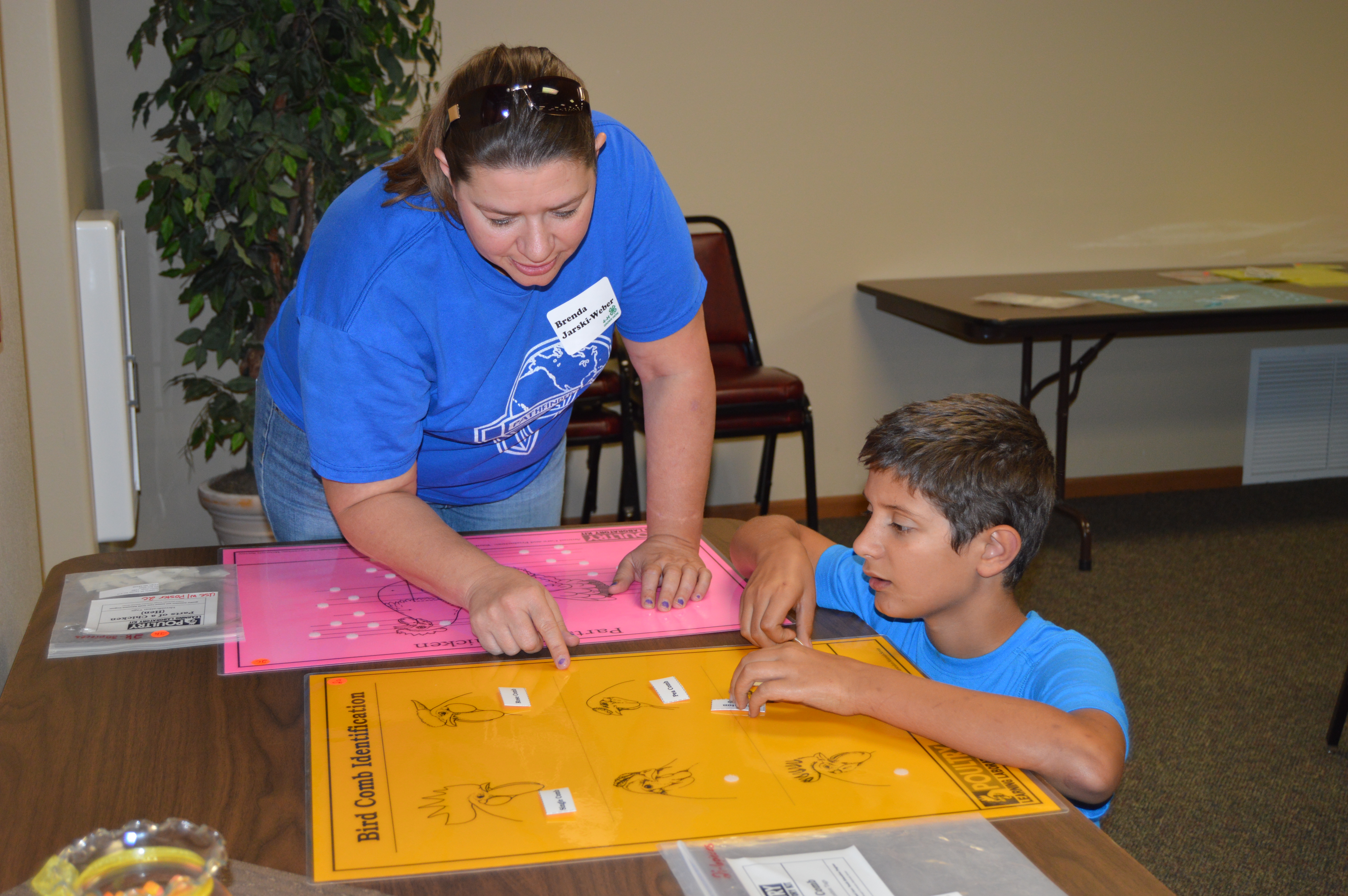 A 4-H volunteer helps a 4-H'er with a bird identification project. (NDSU photo)