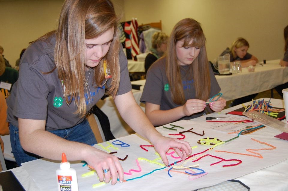 Former 4-H youth from Mercer County create a poster for a food drive for the local food pantry. (NDSU photo)
