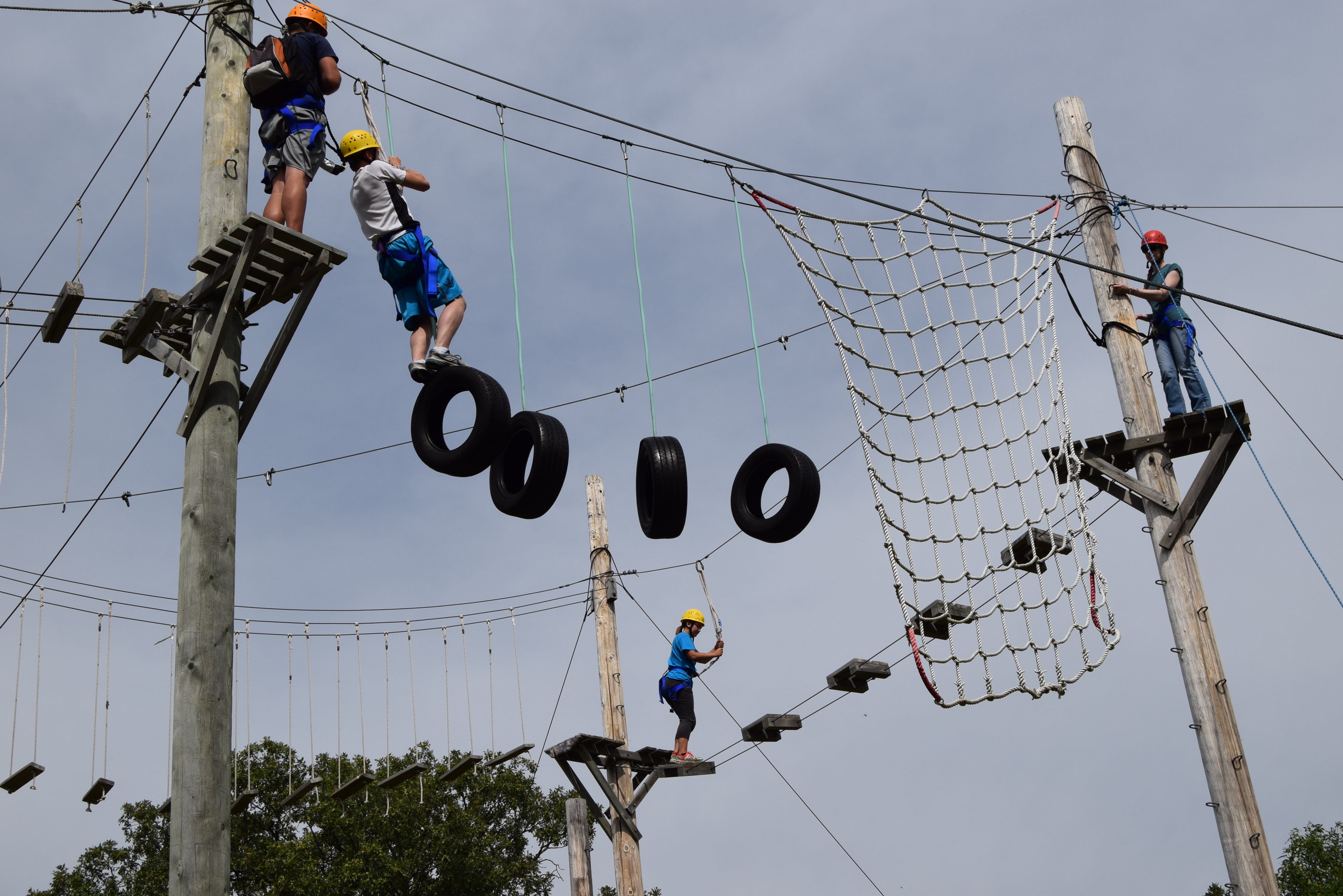 North Dakota 4-H Ambassadors help another 4-H'er during a high-ropes team-buildling course. (NDSU photo)