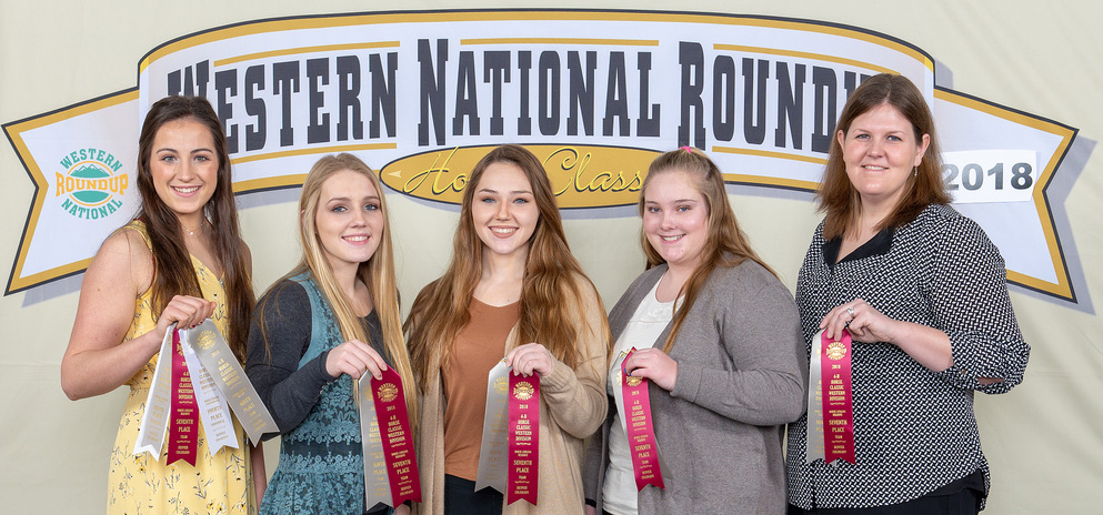 North Dakota's Ward County 4-H team places 12th in horse judging at the Western National Roundup in Denver, Colo. Pictured are, from left: team members Sidney Lovelace, Kaitlyn Berg, Madilyn Berg and Mariah Braasch, and coach Paige Brummund. (Photo courtesy of Western National Roundup)https://www.ag.ndsu.edu/news/newsreleases/2019/jan-28-2019/n-d-4-h2019ers-place-at-western-national-roundup/north-dakota-s-ward-county-4-h-team-places-12th-in-horse-judging/viewhttps://www.ag.ndsu.edu/news/newsreleases/2019/jan-28-2019/n-d-4-h2019ers-place-at-western-national-roundup/north-dakota-s-ward-county-4-h-team-places-12th-in-horse-judging/@@download/image/2019-02-01.1962343057