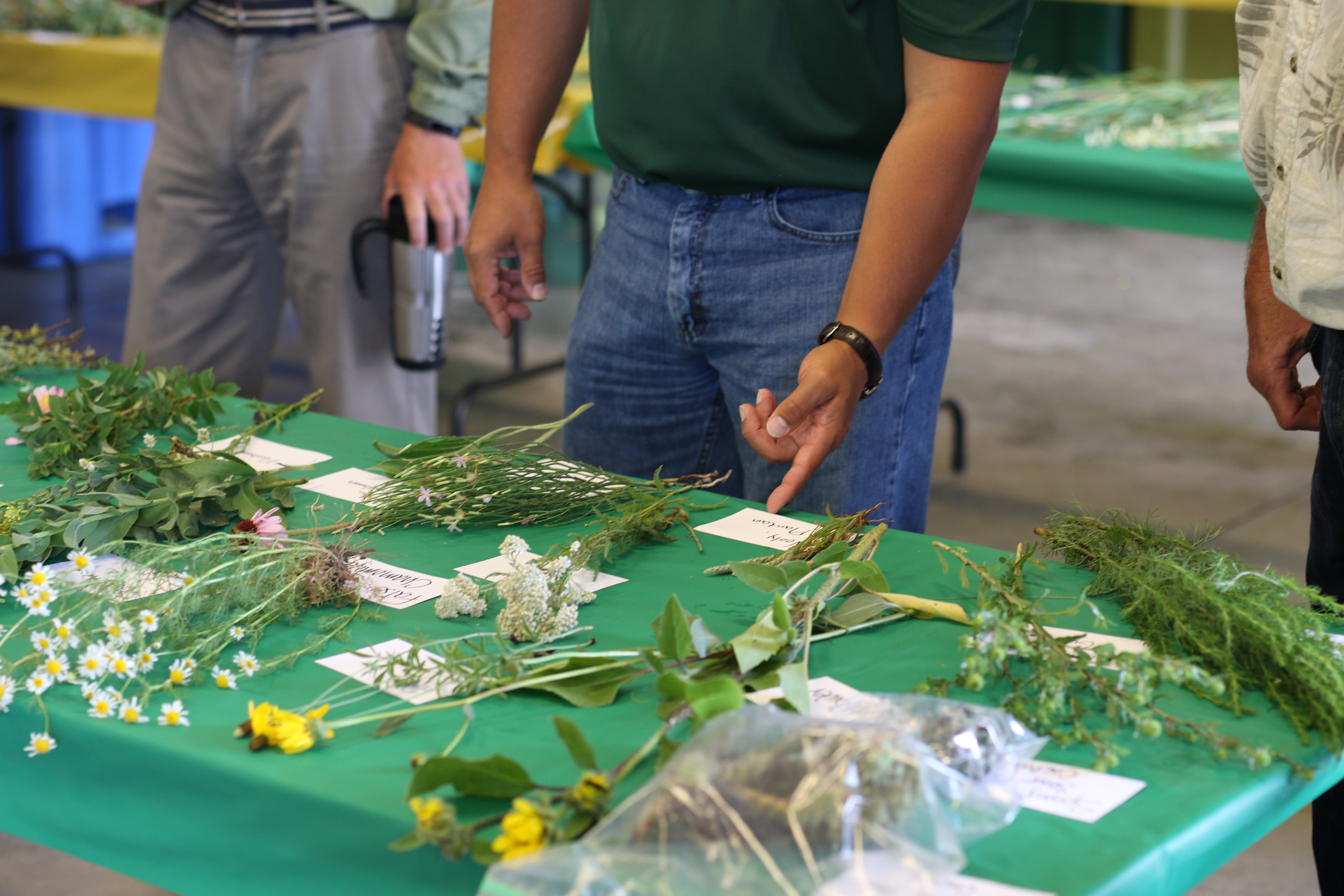 Visitors look at weeds during a pest clinic at the North Central Research Extension Center. (NDSU photo)