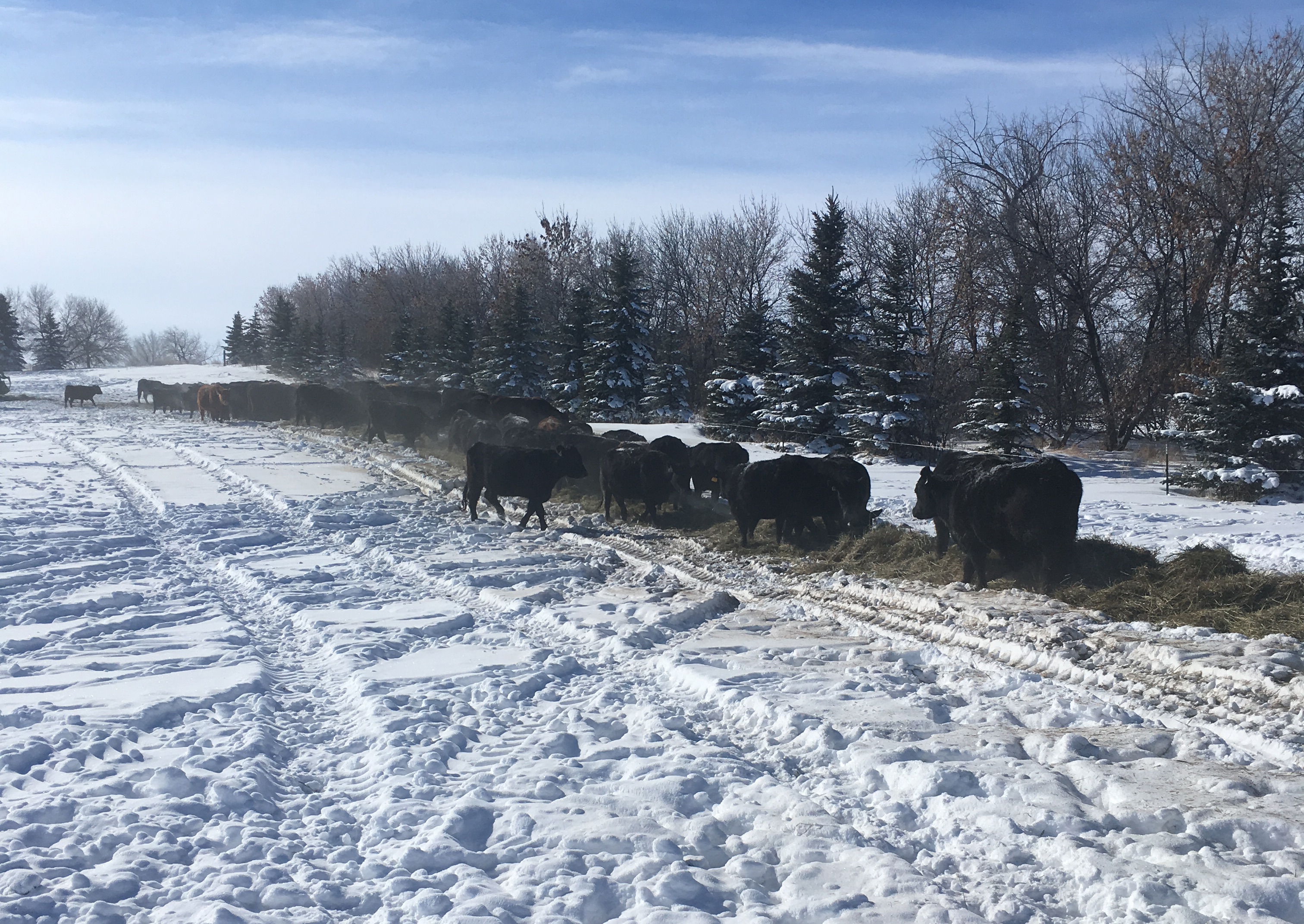 This winter's snowfall and frigid temperatures are forcing some livestock producers to use more feed than planned. (NDSU photo)