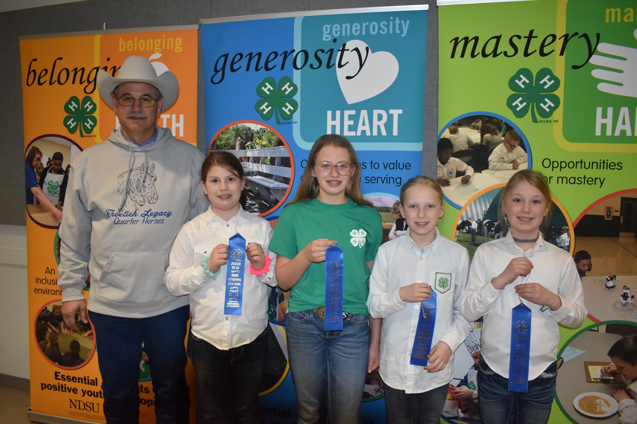 A Stark-Billings County team placed first in the junior division of the state 4-H livestock quiz bowl. Pictured are, from left: coach Kurt Froelich and team members Kylee Sickler, Hadley Talkington, Layne Melchior and Sawyer Wolf. (NDSU photo)https://www.ag.ndsu.edu/news/newsreleases/2020/march-16-2020/youth-compete-in-n-d-state-4-h-livestock-quiz-bowl/a-stark-billings-county-team-placed-first-in-the-junior-division/viewhttps://www.ag.ndsu.edu/news/newsreleases/2020/march-16-2020/youth-compete-in-n-d-state-4-h-livestock-quiz-bowl/a-stark-billings-county-team-placed-first-in-the-junior-division/@@download/image/2020-03-15.3443167458
