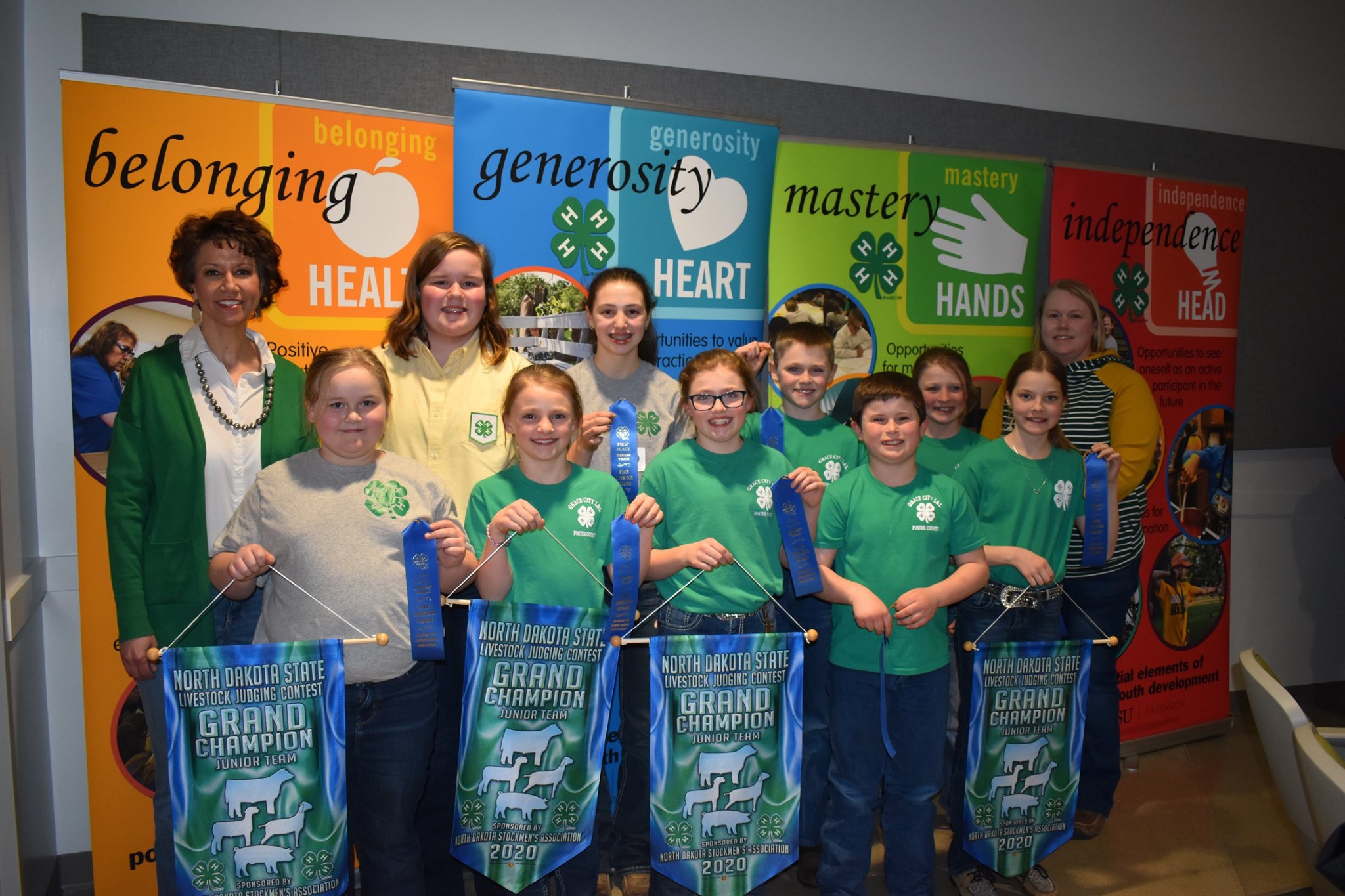 Foster County’s 4-H team placed first in the junior division of the North Dakota state 4-H livestock judging contest. Pictured are (back row from left): Julie Ellingson, executive vice president of the North Dakota Stockmen’s Association; team members Molly Hansen, Isabel Wendel, Trace Spickler and Jessa Spickler; and coach Missy Hansen; (front row from left): team members Cally Hansen, Kadence Spickler, Hayleigh Spickler, Watson Spickler and Cyrena Kuss. (NDSU photo)https://www.ag.ndsu.edu/news/newsreleases/2020/march-16-2020/youth-place-in-n-d-state-4-h-livestock-judging-contest/foster-countys-4-h-team-placed-first-in-the-junior-division-of-t/viewhttps://www.ag.ndsu.edu/news/newsreleases/2020/march-16-2020/youth-place-in-n-d-state-4-h-livestock-judging-contest/foster-countys-4-h-team-placed-first-in-the-junior-division-of-t/@@download/image/2020-03-15.3882806591