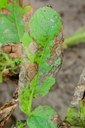 Late blight has been confirmed in a potato sample collected in Pembina County, ND. We do not yet know the genotype of the isolate. Late blight severity values in our area continue to increase and conditions remain favorable for late blight because of the wet conditions and spotty showers. Growers should continue to scout frequently for late blight and apply protectant fungicides on a seven-day schedule, including fields that have been abandoned due to water damage. Scouting is especially important in fields along the Canadian border and in wet fields in northeastern ND and northwestern MN that may be exposed to late blight spore showers. This late blight has the potential to spread to unprotected and abandoned fields near the infected field.