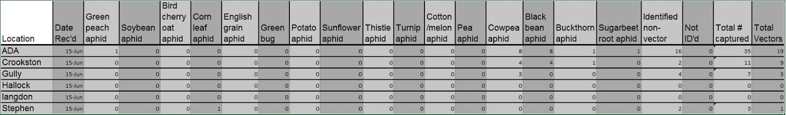 Trap Catches identified to June 06/15